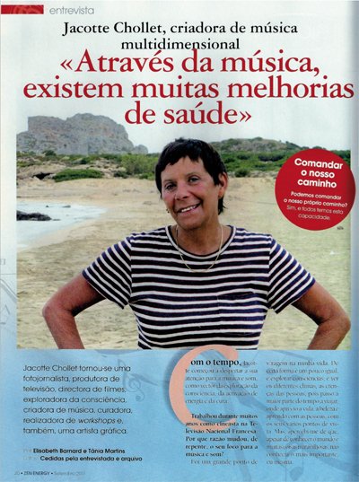 ZEN ENERGYA música multidimensional pode ajudar muito neste período de crise, de incerteza e stress extremo.ZEN ENERGYJacotte Chollet, criadora de musica terapêutica.Artigos de imprensa en frances ARTIGOS EN FRANCES